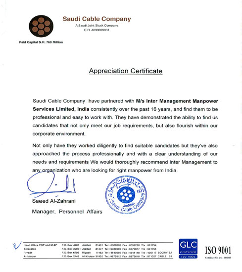 Saudi Cable Co www.saudicable.com InterManagement Manpower Services Limited is catering our